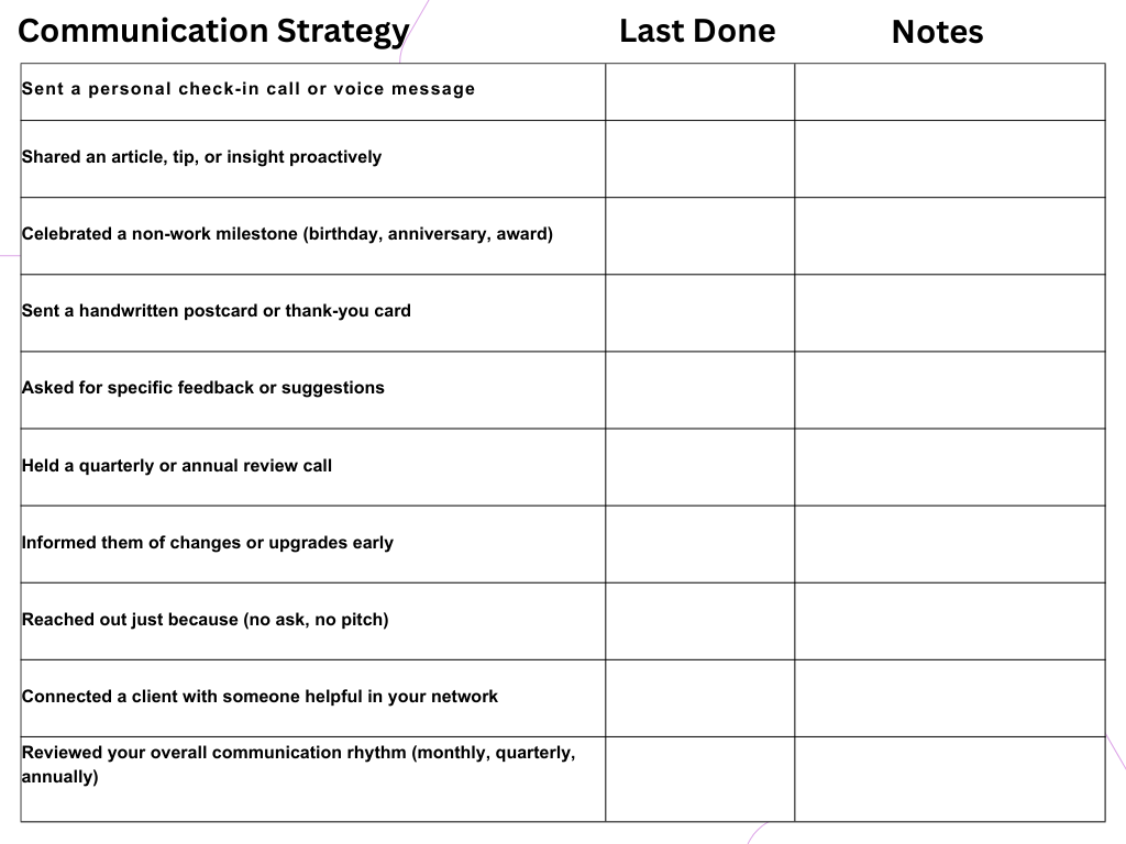 Use this list quarterly to evaluate and elevate your client communication game.